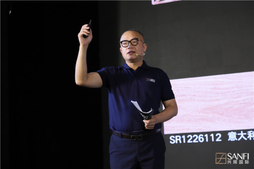 產品是一個企業的基礎核心,更是一個企業的生存命脈。興輝國際品牌營銷總經理賴成東先生縱觀行業產品現狀,從風格、規格、光感、工藝四大方面分析未來產品發展趨勢,通過營銷調研診斷分析終端產品的現狀與問題,從而部署2019SANFI全新產品戰略,賴總指出興輝國際繼續往現代輕奢風格方向發展,通過整合及聚焦重點推廣優勢產品。