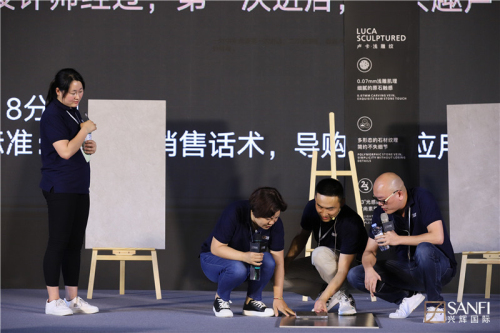 企業品牌屬性給顧客最直接的體驗就是終端的店面形象,為更好推廣,打造興輝國際重磅超級新品-“盧卡·淺雕紋”系列,興輝國際專屬為超級新品定制全新展示應用標準,由興輝國際展示設計部總監吳詠先生為經銷商們展示終端模塊升級調整以及全新的產品終端應用標準,讓消費者從視覺、觸覺都能體驗“盧卡·淺雕紋”系列的細節美,更進一步加深消費者對產品的記憶。
