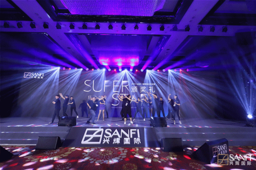 結束為期1天半干貨滿滿的充實學習課程,興輝國際為讓經銷商們放松心情,更好地渡過難忘的一夜,特意精心定制主題為“super star”的聯歡派對,點亮開平夜空中最亮的星,隨著動感絢麗的音樂燈光秀拉開了Super star之夜的帷幕。