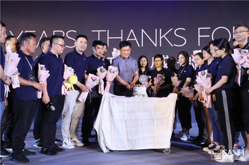 晚會溫情策劃"10年+,興輝感恩有你"特別環節,邀請與興輝肩并肩一起奮斗10年以上的經銷商們和員工們一同上臺,并由興輝新人為他們獻上寓意“初心”的粉紅玫瑰。作為興輝大家長,柯總也深情流露,感謝他們與興輝同行十余載,不忘初心,用最青春的10年,最珍貴的10年,成就今天的興輝。最后眾嘉賓與柯總一起切蛋糕,共同祝愿更美好的下一個十年,二十年......