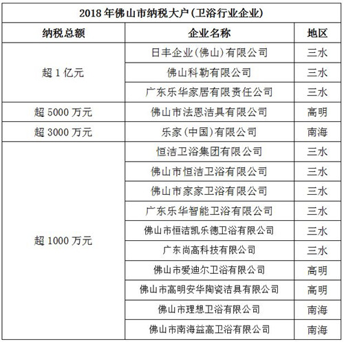38家佛山衛(wèi)浴企業(yè)上榜A級(jí)納稅人名單