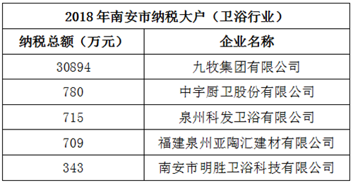 除了佛山,近期多地相關(guān)部門也公布了2018年納稅大戶及A級(jí)納稅人名單,衛(wèi)浴企業(yè)表現(xiàn)突出,有企業(yè)納稅超過3億元。