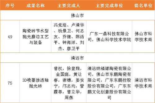 其中涉及陶瓷行業(yè)的科技成果共有2項(xiàng),佛山市、清遠(yuǎn)市各有一項(xiàng),分別為: