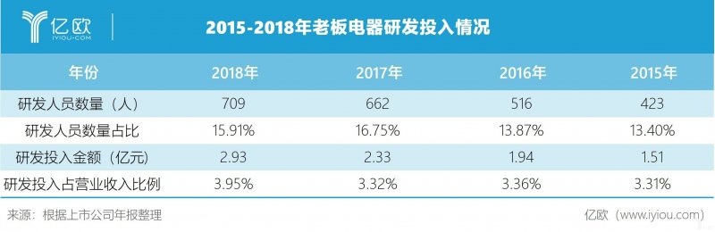 面對(duì)重重壓力,老板電器除了與櫥柜定制企業(yè)合作之外,也逐年增加研發(fā)投入。2018年,公司加大研發(fā)投入,總計(jì)2.93億元,占比3.95%,同比提升0.63個(gè)百分點(diǎn)。在產(chǎn)品開(kāi)發(fā)上,對(duì)吸油煙機(jī)、燃?xì)庠畹瘸墒炱奉悺H昀习咫娖鞴采暾?qǐng)專利481項(xiàng),其中發(fā)明專利106項(xiàng);共獲得專利授權(quán)313項(xiàng),其中發(fā)明專利9項(xiàng)。