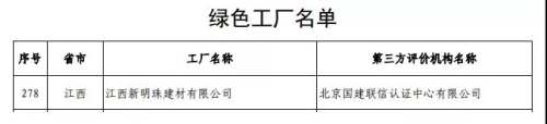 9月12日,國家工業和信息化部辦公廳(以下簡稱“工信部”)正式公布了第四批綠色制造名單。其中,新明珠陶瓷集團旗下江西生產基地——江西新明珠建材有限公司上榜第四批“綠色工廠”名單,成為高安產區唯一上榜的陶瓷企業。