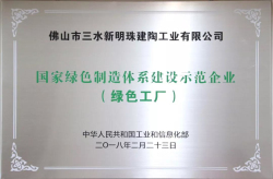 ●2018年2月,佛山市三水新明珠建陶工業有限公司和廣東薩米特陶瓷有限公司就雙雙被國家工信部評為“綠色工廠”單位。