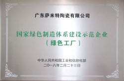 ●2018年10月,廣東薩米特陶瓷有限公司被廣東省環境保護廳評為“廣東省企業環境信用評價(綠牌企業)”。