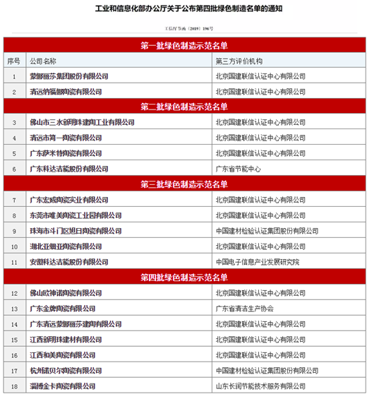 9月12日,工業和信息化部公布第四批綠色制造名單。建陶行業又有7家企業在榜。截至目前,建陶行業“綠色工廠”已達18家。