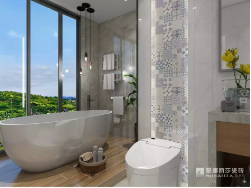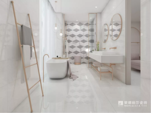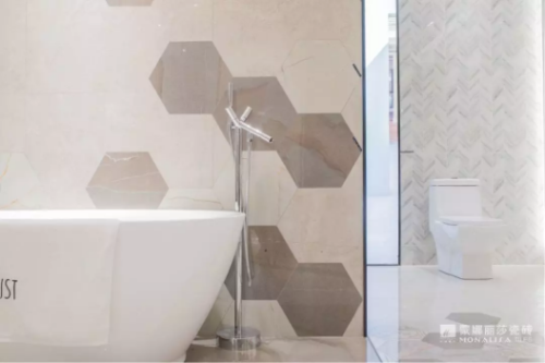 像是七巧板般拼接一副情調十足的藝術畫作,不僅觀感加倍,也能讓沐浴時刻更具優雅韻味。