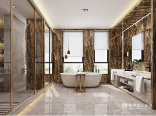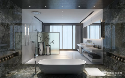 仿石紋理是近些年浴室設計流行的時尚風格,讓局限的浴室中時刻充滿高山流水般的愜意,肆意瀟灑,自然的豪情于衛浴間中收放自如。