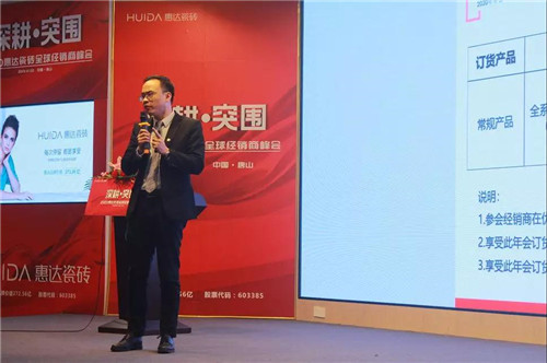2020,新的戰役已經打響。惠達瓷磚市場部張耿增在會上解讀了惠達瓷磚2020市場推廣及315活動規劃。