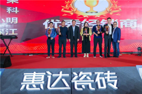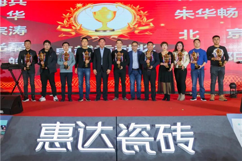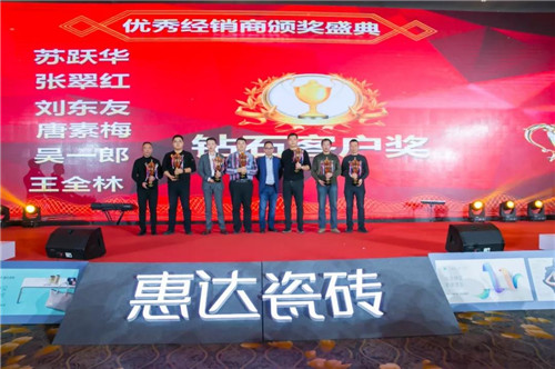 會議現場,公司向這些為品牌做出巨大貢獻的人兒們進行了頒獎。每一項獎都是實至名歸,每一項獎都是對優秀經銷商做出貢獻表示肯定和支持。面對如此高的榮譽,我們也期待能有更多的經銷商朋友伴隨惠達瓷磚的成長,見證惠達瓷磚的輝煌,也希望明年能夠涌現更多的家人們站在領獎臺上。