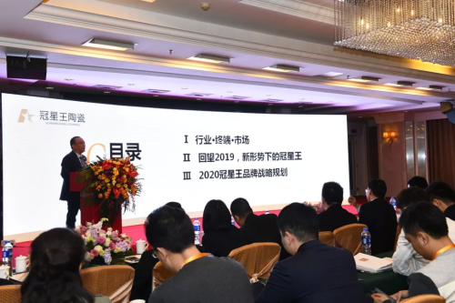 會議上,廣東冠星陶瓷企業董事總經理何友和就冠星王陶瓷2020年發展戰略做重要講話。何總表示,2019年陶瓷行業受環保政策限制、中美貿易戰影響、房地產行業發展放緩等因素的影響,陶瓷行業發生急劇深刻變革。但這一年,冠星王陶瓷在行業寒冬中逆勢飄紅,創造品牌新輝煌:新總部大樓落成、品牌形象全面升級、尚品巖板新品橫空出世、雅奢大店遍布全國、戰采工程全線開花,實現銷量穩步上升。何總強調,在2020年我們要以高標準、高質量、高效率來要求自己,依托強有力的智能化生產,在產品研發、產品品質上嚴謹把控。以產品為核心,通過設計賦能,全力推動品牌在各方面的發展,為冠星王陶瓷打造百年品牌打下堅實基礎!