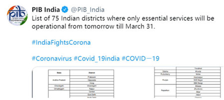 共75個(gè)封城列表,包含新德里、孟買、清奈等眾多港口城市