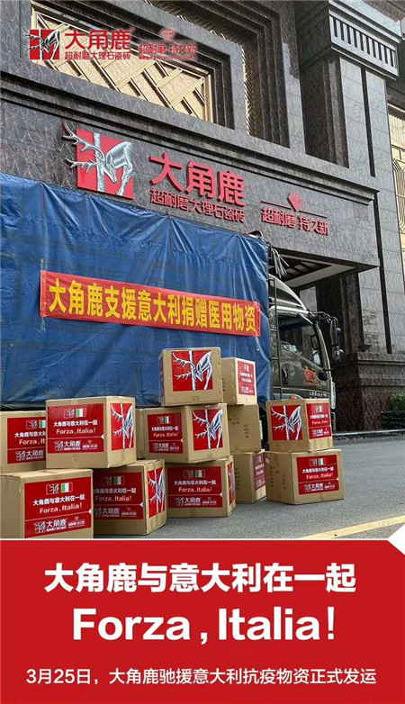 自疫情以來,意大利與中國達(dá)成了800萬口罩的供貨協(xié)議,中國主動(dòng)協(xié)助意大利抗擊疫情,在這種的情況下,蒙娜麗莎、唯美集團(tuán)、東鵬、大角鹿等陶企,雪中送炭以實(shí)際行動(dòng)向意大利等國提供物資支援。