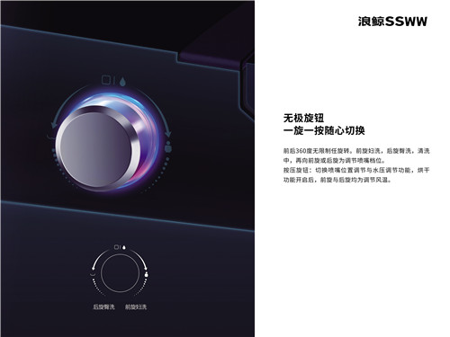 對于老人來說,以往智能馬桶上的操作面板過于繁雜,無法準確找到想要的功能,而浪鯨旋動力S10智能溫控座便器的無極旋鈕功能設計,一旋一扭便可輕松滿足我們的日常清洗需求,真正達到智能化、人性化。
