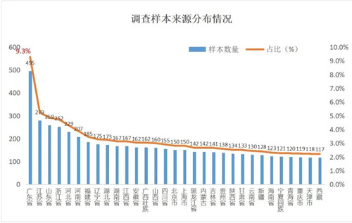 本次受訪者來源以華東一帶居多,西南西北等地相對較少,其他省份樣本分布相對均衡。