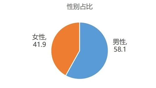 從性別分布來看,男性受訪者比例略高于女性受訪者。其中,男性受訪者占比58.1%,女性受訪者占比41.9%。