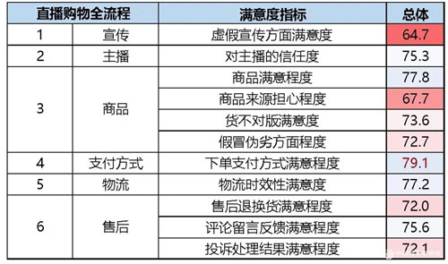 ①直播購物全流程滿意度