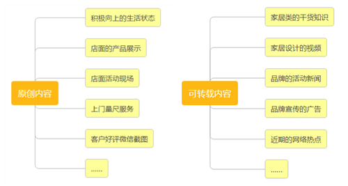 原創(chuàng)內容:關于自己的積極向上的生活狀態(tài)、店面的產品展示、實際的工作場景(店面活動、上門量尺等)、正面的感悟、客戶好評微信截圖,分享工作的最新動態(tài)等等。