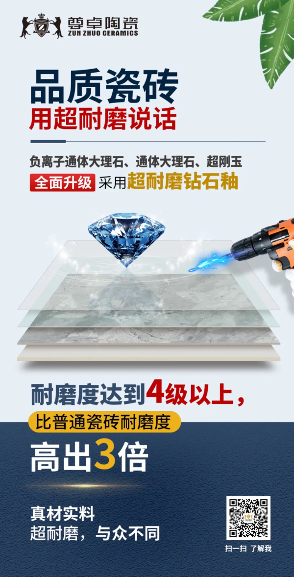 定義一片好磚 | 尊卓陶瓷鉆石釉產品升級:超耐磨,持久新!
