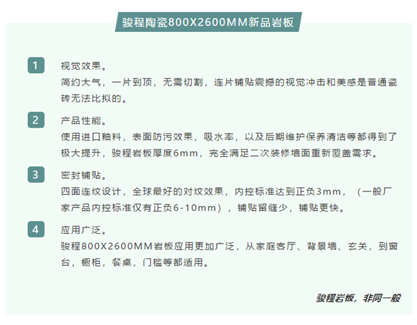 駿程800X2600MM新品巖板新鮮出爐啦!兼具顏值和性能,非同一般的空間體驗(yàn)。容納自然風(fēng)光,包含現(xiàn)代時(shí)尚思想。廣闊境界,聚焦駿程800X2600MM新品巖板!