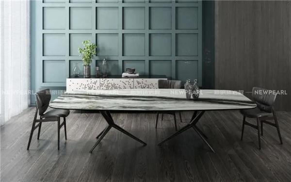 ▲新明珠巖板【月光傾城】,全屋家居定制餐桌系列