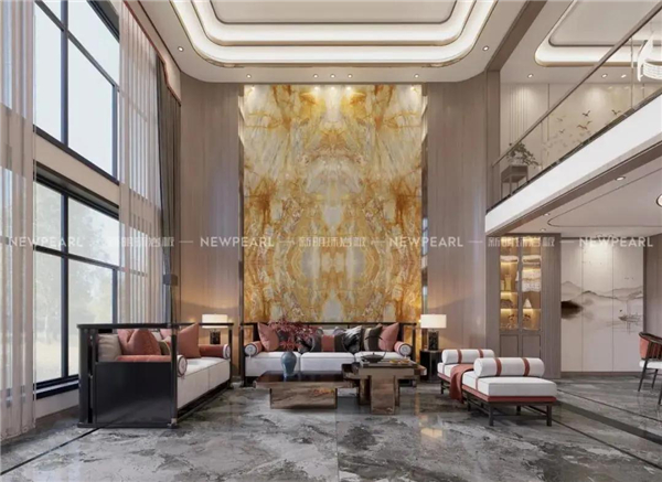 ▲新明珠巖板錫耶納黃系列背景墻