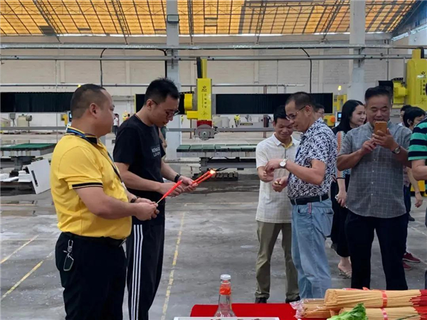 上午8:38分,開工儀式正式點火。集團公司巖板家居智能制造中心總經理母軍、集團巖板深加工服務中心廠長周實等高管出席啟動儀式。
