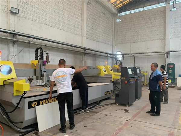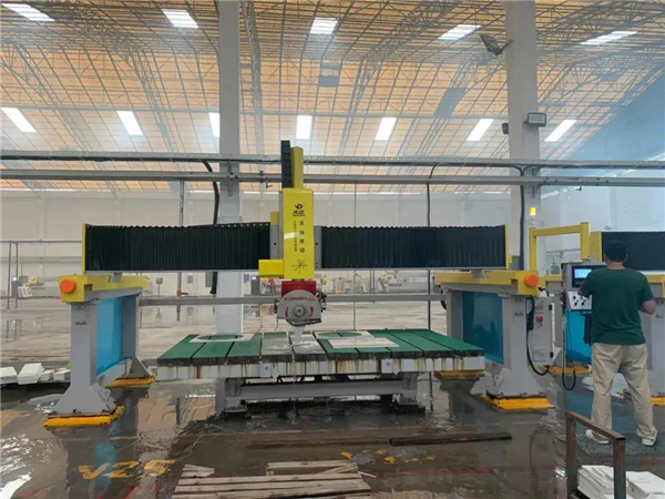 基地引進國內目前最先進的超高壓數控AC五軸萬能水刀切割機,CNC全自動電腦數控石材加工中心(自動換刀)、五軸四聯動數控橋切機、全自動直線異型邊拋光生產線,直邊斜邊拋光機等成套高精尖先進設備。