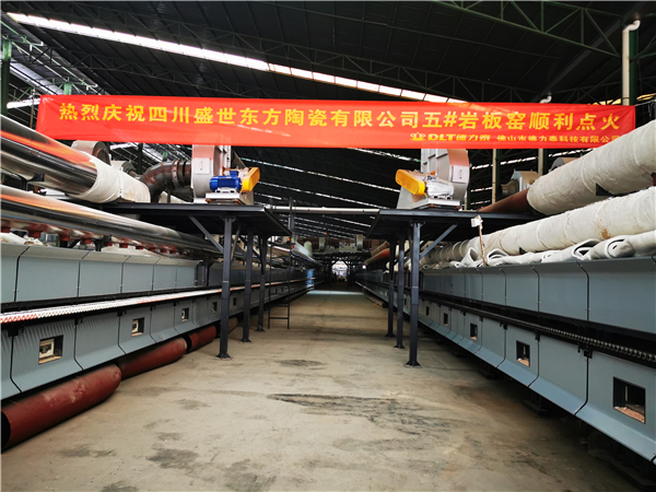 2020年9月8日上午,四川夾江縣盛世東方陶瓷有限公司(以下簡稱“盛世東方”)5#生產線的項目現場,一派喜慶景象,吉時8:18迎來了德力泰承建的工業(yè)4.0能效標桿——西南地區(qū)首條3mm超韌健康纖薄巖板窯爐的點火儀式。