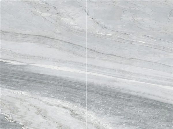 產品特色:清爽舒適的“白金沙”,藍白色調交織相融,自然流暢的紋理縱向延伸,形成行云流水般的美感,金色肌理勾勒石材脈絡;一磚6面連紋,完美呈現大自然的整體美感。