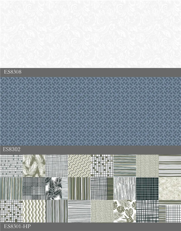 產品特色:素雅的灰色調,流暢的條紋肌理,獨特的植物圖案花磚,帶著自然氣息的“灰色森林”,舒適,輕松,安靜。