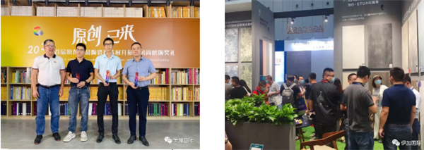 7月16日,伊加國際憑借原創設計“G-STONE伊加國際魔法石瓷磚”在2020首屆原創精品陶瓷邀請展開幕暨風尚榜頒獎禮上榮獲“年度最佳工藝美學瓷磚”榮譽稱號。同時,在7月份的佛山潭州陶瓷展會上,這款產品以高顏值產品與差異化工藝自帶流量,成為佛山潭州陶瓷展會上的吸粉大戶。