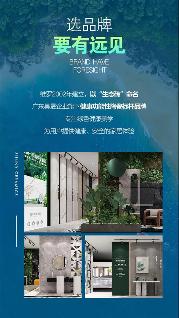 維羅生態磚始于2002年,是廣東昊晟企業旗下健康功能性陶瓷特色化標桿品牌,是行業最先、唯一以“生態磚”命名的品牌,專注綠色健康美學,為消費者提供更舒適健康的家居空間體驗。