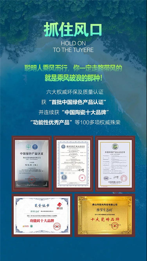 有健康才有一切!2020疫情席卷全球,經濟嚴重受挫,這是一場人類與病毒的博弈,是對全人類的大考驗。人們會越來越注重室內環保健康問題,瓷磚是家庭裝修的主材之一,所以環保健康的瓷磚被推向風口浪尖。你是否已經踏上生態健康的浪潮,乘大勢之風,一起共享健康財富新藍海?!