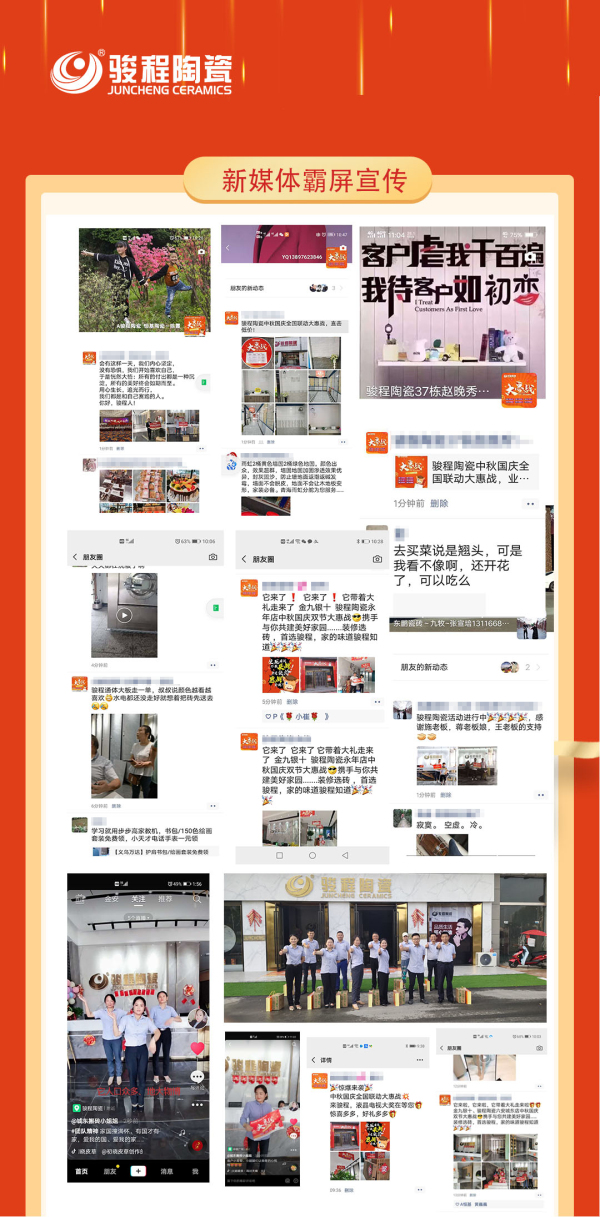 03聚焦新媒體,抖音巨浪,霸屏朋友圈,大家爭相成為駿程陶瓷中秋國慶全國聯動“大惠戰”的推薦官~