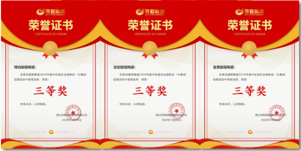 05本次駿程陶瓷中秋國慶全國聯動“大惠戰”中,精英門店表現突出,載譽而歸。其中青島駿程陶瓷喜獲一等獎,西寧駿程陶瓷和山陽駿程陶瓷喜獲二等獎,博白駿程陶瓷、龍巖駿程陶瓷、宜春駿程陶瓷喜獲三等獎。