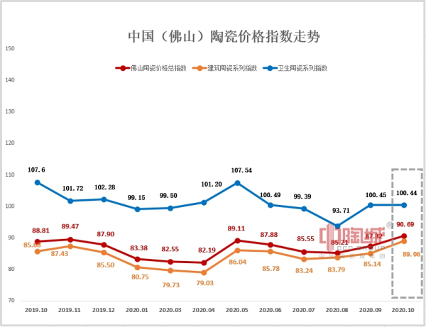 2020年10月佛山陶瓷價格指數(shù)走勢點評分析對比