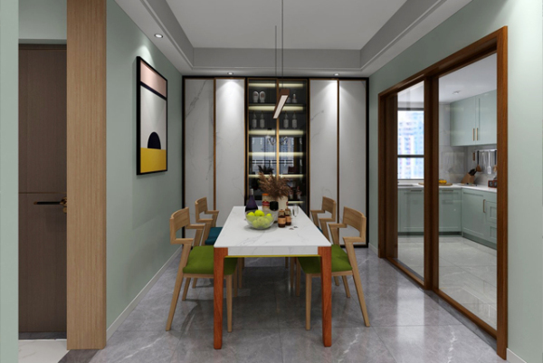 原木色的生命力搭配灰綠色的鮮活,在這種匹配與呼應中,和諧統一地突顯出自然雅韻,以空間的平衡之美,給從寒冷中歸來的人們以安寧之感。