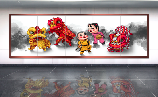 ▲夏西路站陶瓷文化藝術墻:展示了具有深厚群眾基礎的佛山醒獅