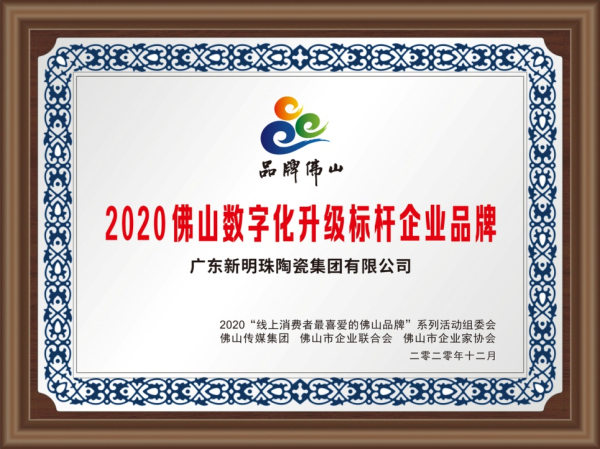 12月23日,在佛山數字經濟峰會暨品牌佛山授牌儀式上,新明珠陶瓷集團憑借在數字化轉型上做出的出色成績,與美的、海天、格蘭仕等企業一同上榜“2020佛山數字化升級標桿企業”!