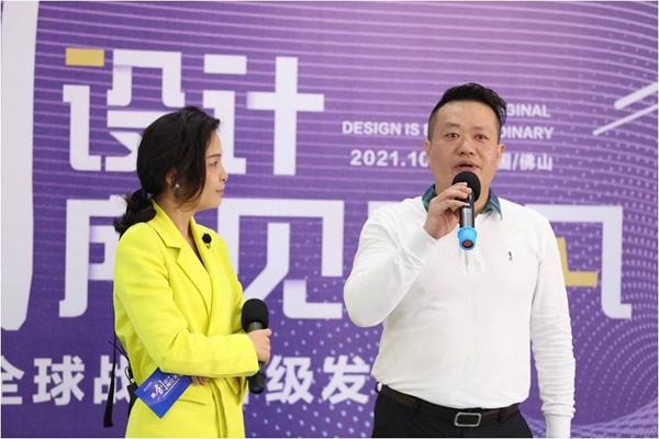 活動高潮環節,騰訊家居主持人金堂獎全國聯盟首選運營官YOYO與八馬瓷磚總經理呂偉坤,以及佛山陶寶設計有限公司總經理葉木青進行了關于“原創設計”的交流與分享。