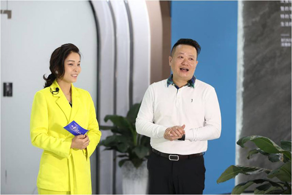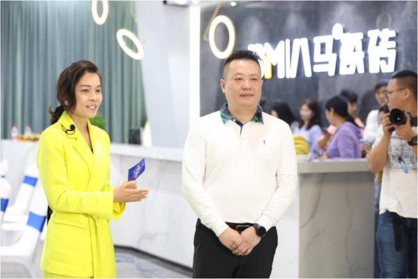在騰訊家居線上直播的鏡頭之下,主持人YOYO帶領著媒體團,一起探索八馬瓷磚原創館,與八馬瓷磚品牌總經理呂偉坤和產品研發總監葉興耀進行了深度交流。