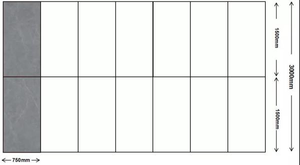 750x1500mm墻 - "兩片到頂"鋪貼效果