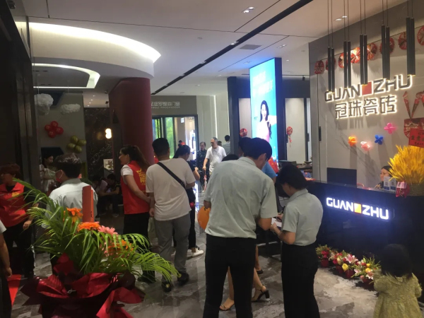 10月6日,海南瓊海冠珠瓷磚輕奢館震撼開業。瓊海冠珠憑借對品牌和市場的信心,逆勢加大終端投入,年初實現了1500多平方米店面升級。煥新升級的店面形象、鉅惠的國貨福利、神秘的現場抽獎、精美的禮品派送以及幸運的免單機會等,吸引眾多消費者圍觀打卡,活動現場人氣高漲,攬獲消費者紛紛現場下單搶購國貨冠珠。