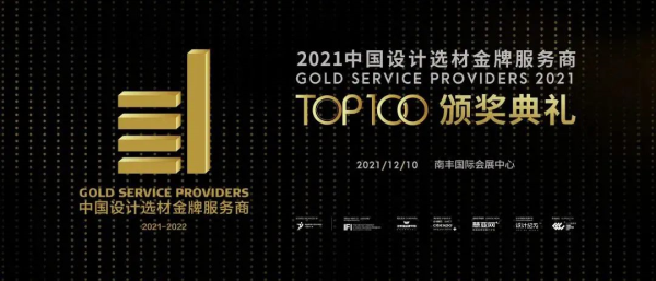 獲頒“2021中國設計選材金牌服務商TOP100”榮譽
