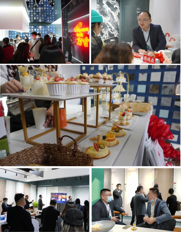 此次設計周,重點展示大將軍品牌最新花色和工藝的巖板產品,聚焦800×2600mm、1200×2400mm兩大熱門規格,新品應用精雕釉面、細啞釉面、絲滑釉面和干粒亮拋等工藝,每一個細節都是為了提供極致的觸覺和視覺體驗,吸引了大批設計師駐足,大家都忍不住直接上手摸一摸,不同的產品觸感直觀的給大家展示了產品特性。