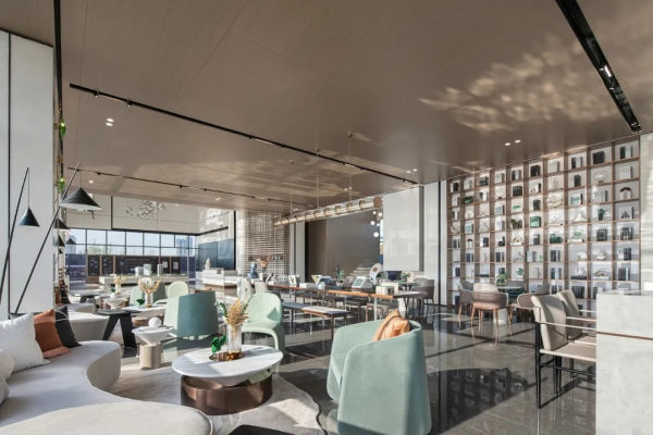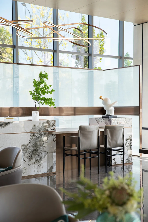 一個創(chuàng)意的建筑空間,一定是在貼合需求的基礎(chǔ)上,通過形式與功能的結(jié)合,進行空間打造和細節(jié)研磨。元熙里美學(xué)營銷中心選擇了格調(diào)上與之相匹配的新型飾材——冠珠巖板,將理想的設(shè)計藍圖予以實現(xiàn):