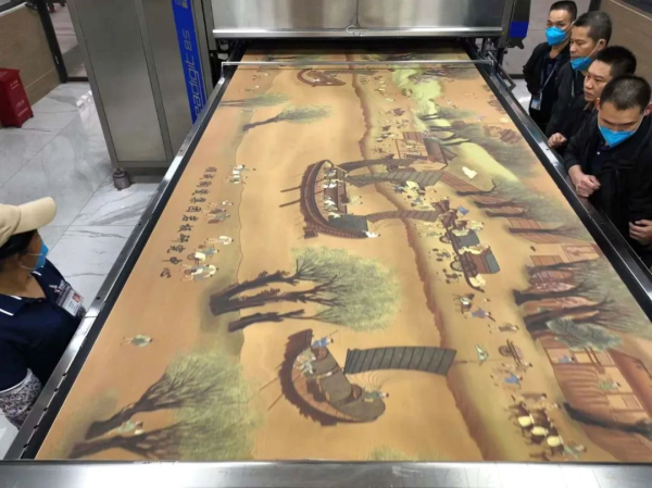 我們耗時數(shù)月、克服重重困難,將《清明上河圖》“搬”到9600mm×1600mm×10mm巖板上,讓明朝的蘇州街頭眾生相,在人們面前“活”了起來!